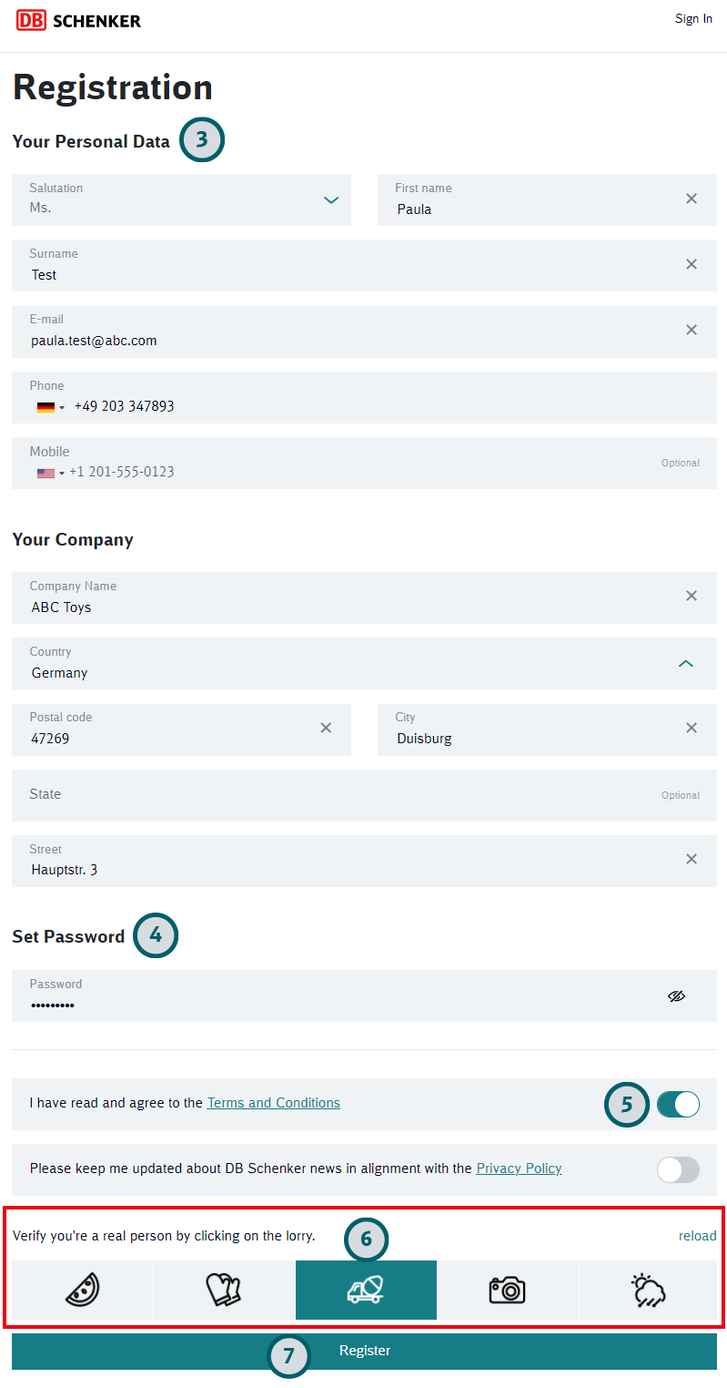 This will allow the customer to log into DB SCHENKER | connect directly after successful registration. DB SCHENKER | connect user setup is required in addition.